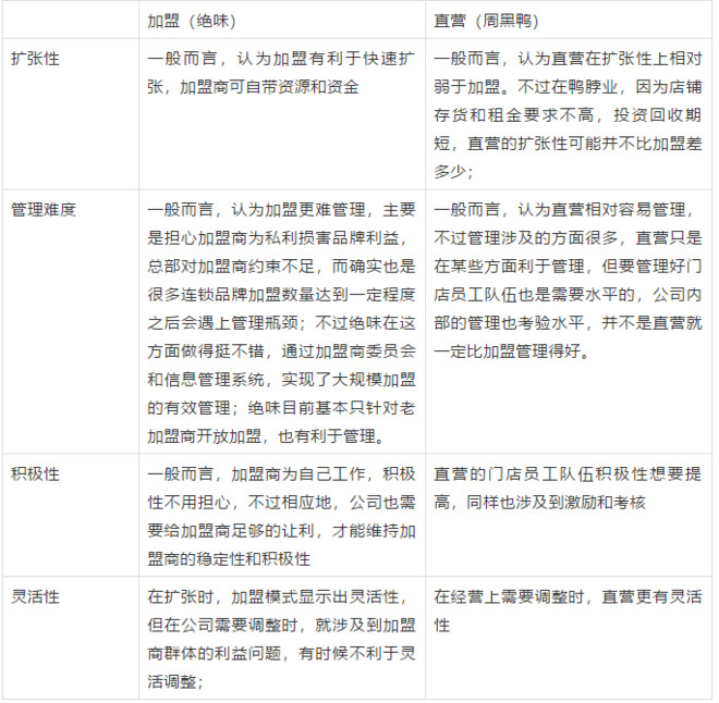 绝味相当于一家制造企业,主要进行品牌、管理和产品输出,除了100多家直营店是自己请的人销售,其他产品全是加盟商负责销售。