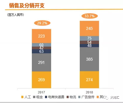 从年报数据可以看出,税前利润下降了2.72亿,而毛利方面下降了1.33亿,销售费用上升了1.33亿,基本上可以说利润下降的原因主要就是毛利下降和销售费用上升。毛利下降主要是因为原料价格上涨,销售费用上升主要是门店扩张带来的租金上涨、物流和广告费用等,原有门店的租金也在上涨。