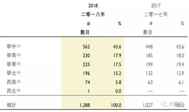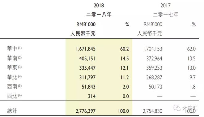 从分区域门店数量和销售情况来看,各区情况有所不同。华中地区(包括湖北湖南江西安徽河南)是传统主力区域,在门店增加的情况下销售收入有所下降,华东(江苏上海浙江)情况类似,说明平均单店营收下降,老店营收大幅下降;华南华北西南销售收入有所提高,增速低于门店增速,说明平均单店营收下降。