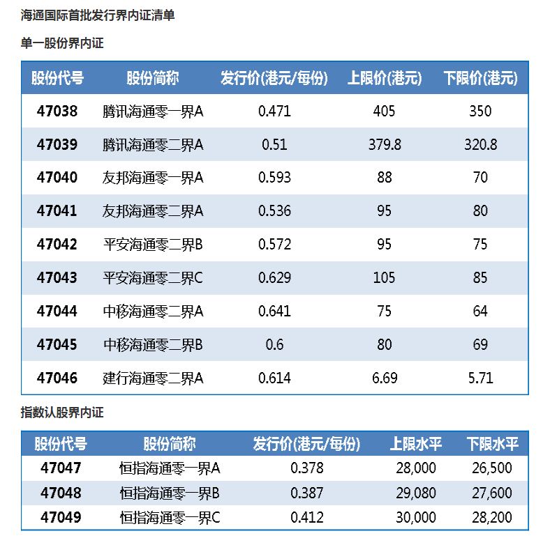 海通国际首批发行的界内证共有12只,包括3只指数界内证和9只股份界内证。