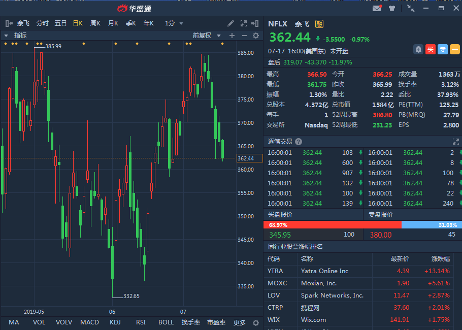 流媒体视频服务巨头奈飞(NFLX)周三盘后公布了2019财年第二季度财报,付费用户增长不及预期,盘后股价暴跌11.97%至319.07美元。
