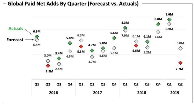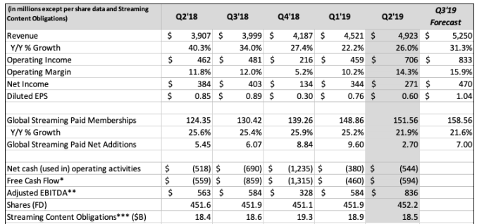 公司对下一季度的业绩仍持乐观态度,预计下季付费用户增加700万(去年同期为610万),其中美国流媒体订阅用户净增80万。从历史规律看,用户增长不及预期均集中在上半年,下半年实际用户增长均超预期,而且本季为预期差最大的一次(低230万,不及预期的情形此前均在100万误差内),反映出公司此前的确太过于乐观。