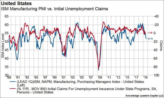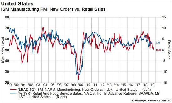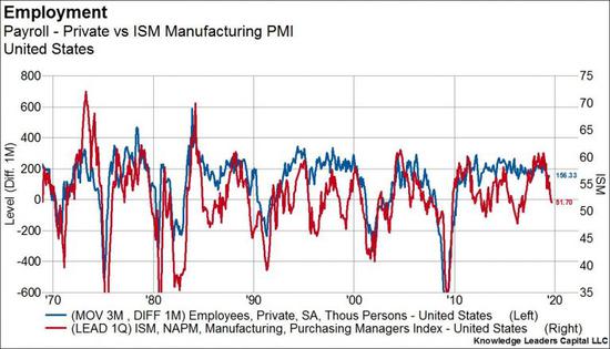 美国2016年至2018年期间长期利率的增长仍在影响着当前的经济,这会一直持续到今年年末。这表明ISM制造业指数面临困难。主要经济指标开始下滑时,观察其他“强劲”滞后经济数据时就应该更小心谨慎。