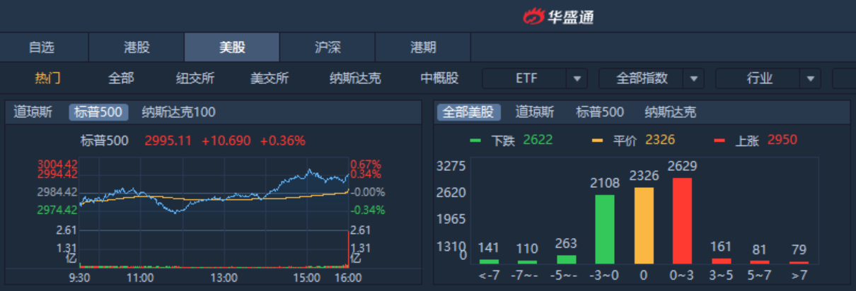 周四,全球降息浪潮提振美联储降息预期,三大股指微幅收涨。道指涨0.01%,报27222.97点;标普500指数涨0.36%,报2995.11点;纳指涨0.27%报8207.24点。