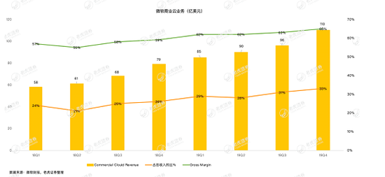 财报显示,第四财季,微软商业云收入达110亿美元,同比增长39%,毛利率稳定增长达至65%,商业云收入占总收入的比例也持续上升至33%。