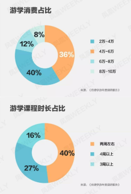 据相关数据显示,购买国际游学产品时,家长给孩子安排的游学消费集中在4~6万,多数选择为期两周左右的游学项目。