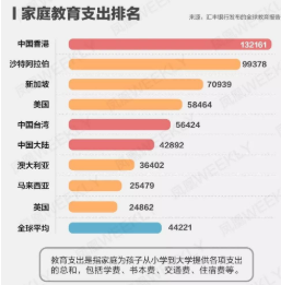 在孩子教育的金额上,中国家长平均花费了42892元,全世界排名第6名。