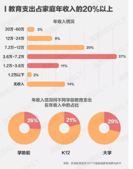 生孩子后,存款就是一个缓慢减少的过程,如下图,中国家庭的教育支出花费了年收入的20%以上。