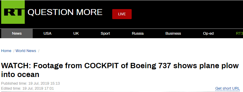 据RT报道,飞机维修工程师当时坐在驾驶舱的弹跳座椅上拍摄了客机坠毁的可怕画面。调查人员说,这段视频非常宝贵,帮助他们确定了坠机原因。坠机原因包括飞行员公然无视他们的仪器发出的客机降落太低等一系列警告。
