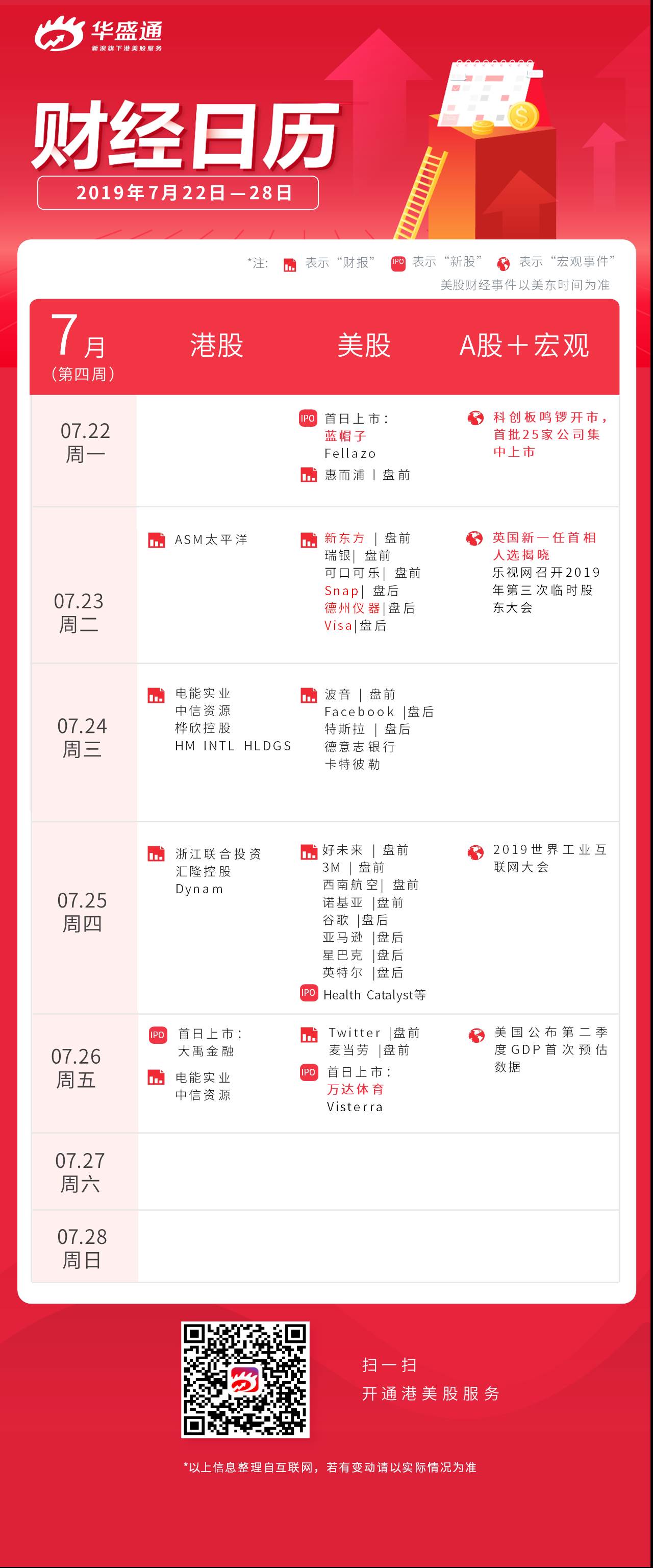 一周财经日历丨美股迎来财报季,万达体育周五上市