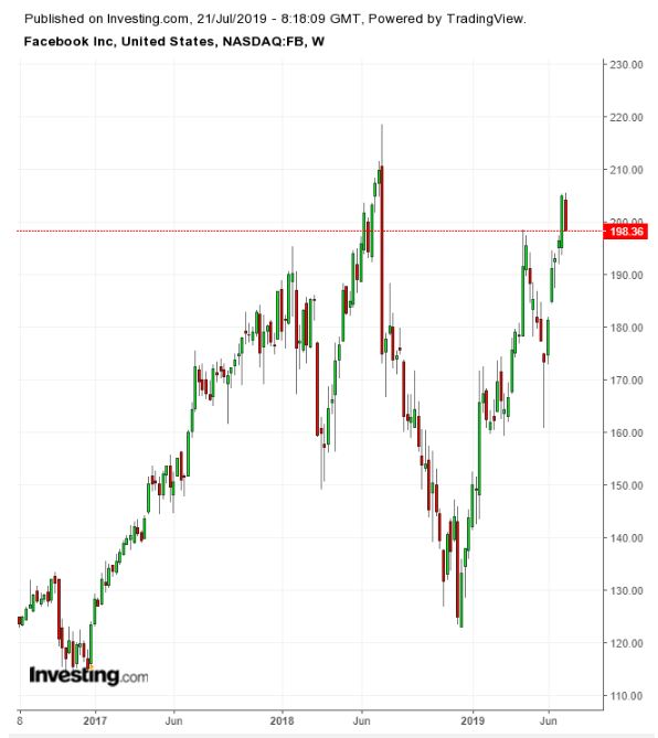 自2019年初以来,Facebook股价飙升约50%,周五收于198.36美元。此前在2018年晚些时候,因为数据泄露、用户隐私及平台的政治操纵问题,Facebook一度暴跌超过25%。