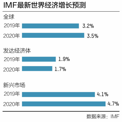 国际货币基金组织(IMF)7月23日发布的最新《世界经济展望报告》(WEO)中,再次调降了对2019年和2020年世界经济增长的预期,预计2019年全球经济增长3.2%,2020年回升至3.5%,比4月WEO对今明两年的预测再均下调0.1个百分点。