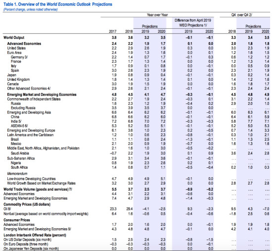 对于发达经济体,IMF预计2019年和2020年分别增长1.9%和1.7%,对2019年增速预测相比今年4月上调 0.1个百分点。