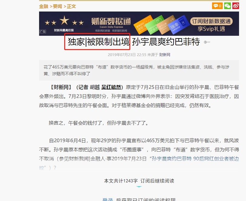 北京时间7月23日晚间,有媒体报道称,波场TRON基金会创始人、拍下今年巴菲特午餐的孙宇晨已被边控,互金整治办已经建议公安机关对其立案。