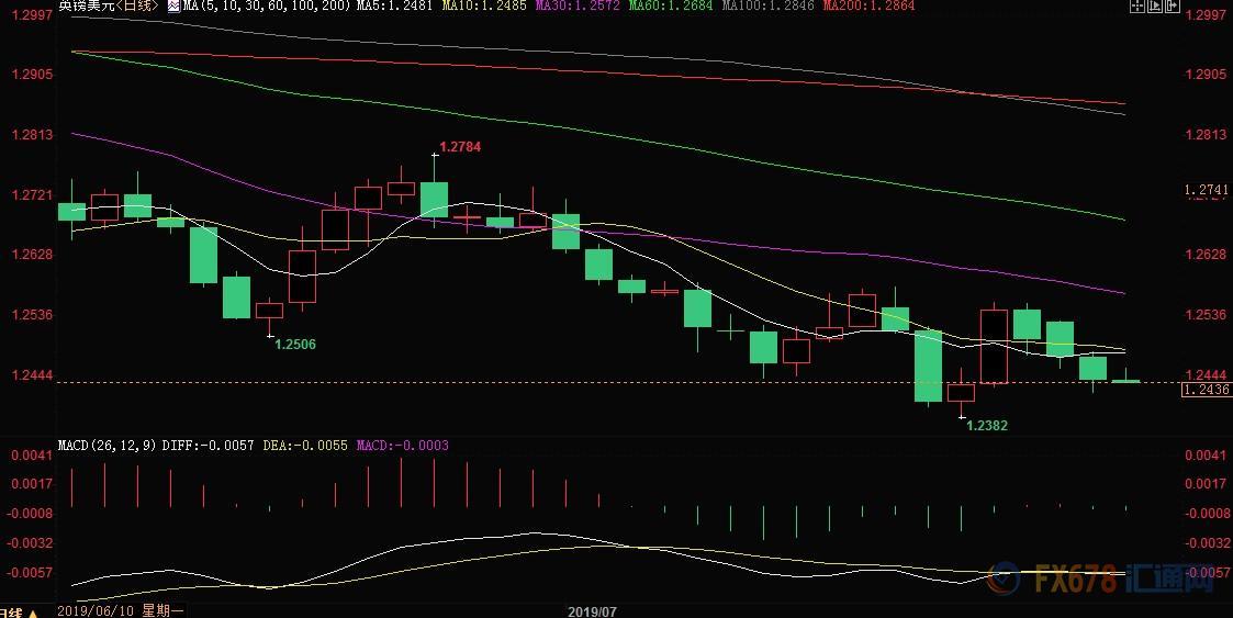 易汇通实时行情分析软件显示,截止北京时间7月24日8:11,英镑兑美元现报1.2436/38,微跌0.03%。
