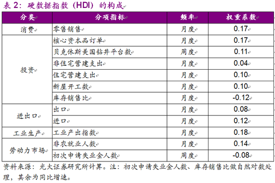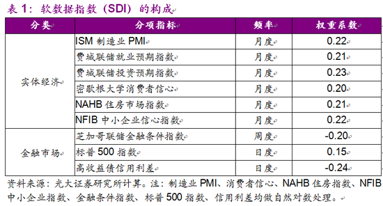 附录:我们构建的软数据指数(SDI)主要包含一些企业和家庭调研数据,以及金融市场数据,共有制造业PMI、消费者信心指数等9项指标。硬数据指数(HDI)主要包含与GDP相关的数据,共有零售、资本品订单等12项指标。我们将这些软、硬指标做标准化处理,然后按相应的权重系数做加权平均,最终得到SDI与HDI。