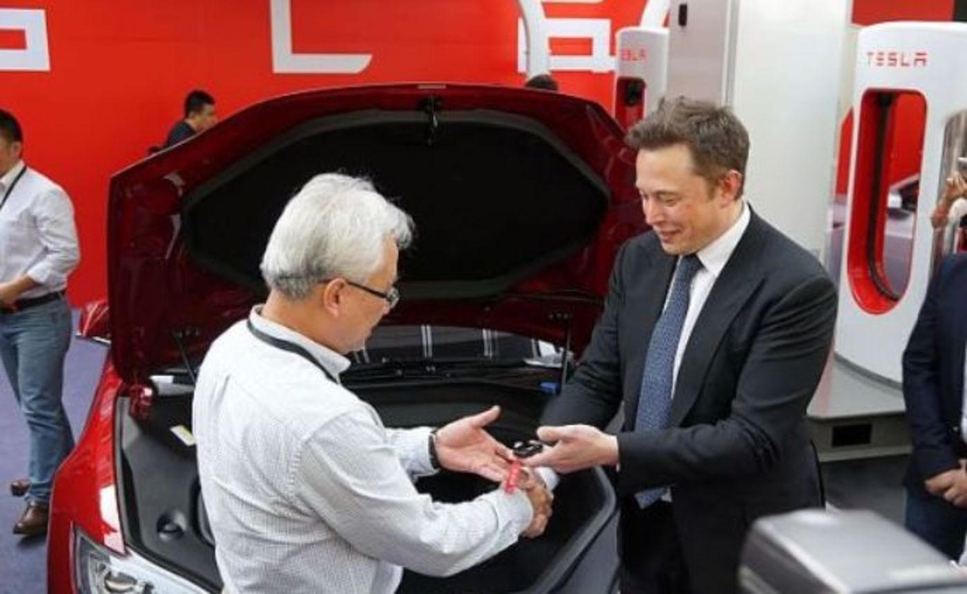 2014年4月22日,马斯克专程赶到中国,向中国的第一批特斯拉车主亲自交付车钥匙。
