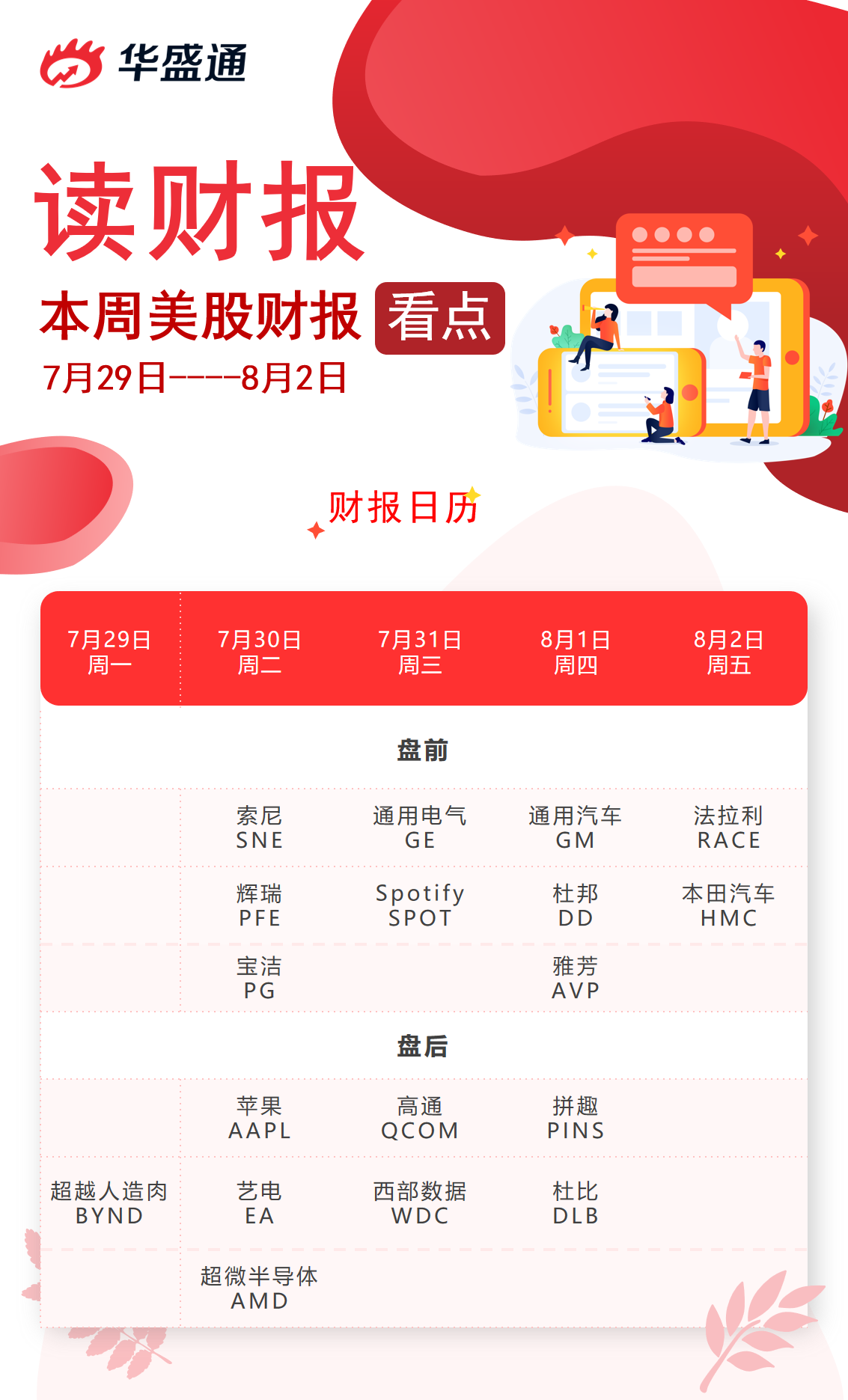 本周有以苹果为首的多家公司发布财报,重点关注:苹果、高通、人造肉、音乐流媒体Spotify,超微半导体。