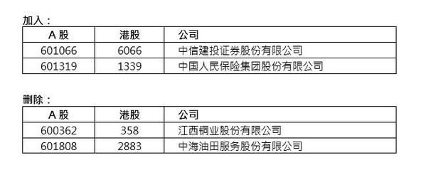 原标题:沪港通AH股精明指数剔除江铜等 纳入中信建投等