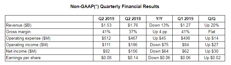 其总裁兼CEO苏姿丰表示对本季度的财务表现和执行情况感到满意,并称3个领先的7纳米产品系列已经开始量产,新款Ryzen、Radeon和EPYC处理器构成了公司历史上最具竞争力的产品组合,公司正处于推动下半年显著增长的有利位置。