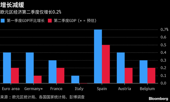 欧元区第二季度经济增长大幅减缓。这是近期标志着欧元区经济前景恶化的一系列报告中的最新数据,增加了欧洲央行采取刺激措施的概率。