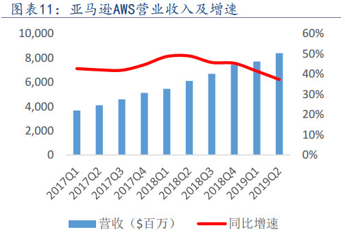 尽管7成业务是电商以及电商相关,但你把亚马逊称为电商就错了。他还是全球云计算业务龙头。云业务中分Saas、Iaas、Paas,SaaS是软件即服务、PaaS是平台即服务和IaaS则是基础设施即服务。亚马逊的AWS业务就属于IaaS,在本财年Q2实现了83.8亿美元营收,同比增长37.28%,是亚马逊第三大业务,也是近年来业绩的高速增长点。
