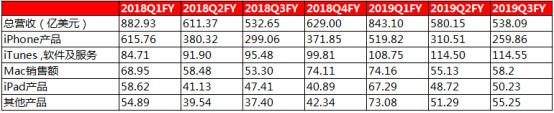 而从苹果的区域营收细分,可以推测,iPhone手机销量的下降与中国市场有着很大的关系。在2019财年Q1苹果修正了提高iPhone售价的做法,除了降价还开展了旧机置换和分期支付等多项优惠活动。而我们观察上图可以看到,大中华区的销售收入同比增速由2019Q1的-26.7%明显缩窄到了本季度的-4.1%。