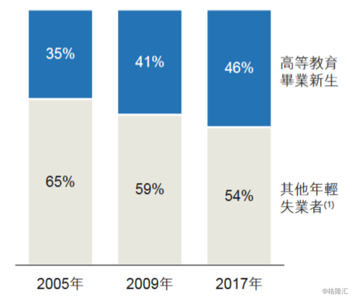 根据弗若斯特沙利文报告,高等教育毕业新生占整体年轻失业者的比例由2005年的约35%增至2017年的约46%。市场对具备专业技能的毕业生的需求不断上升,而中国大部分公立大学专注学术研究而非实践技能培训。因此,预期专注应用技术的大学数量将不断增加。