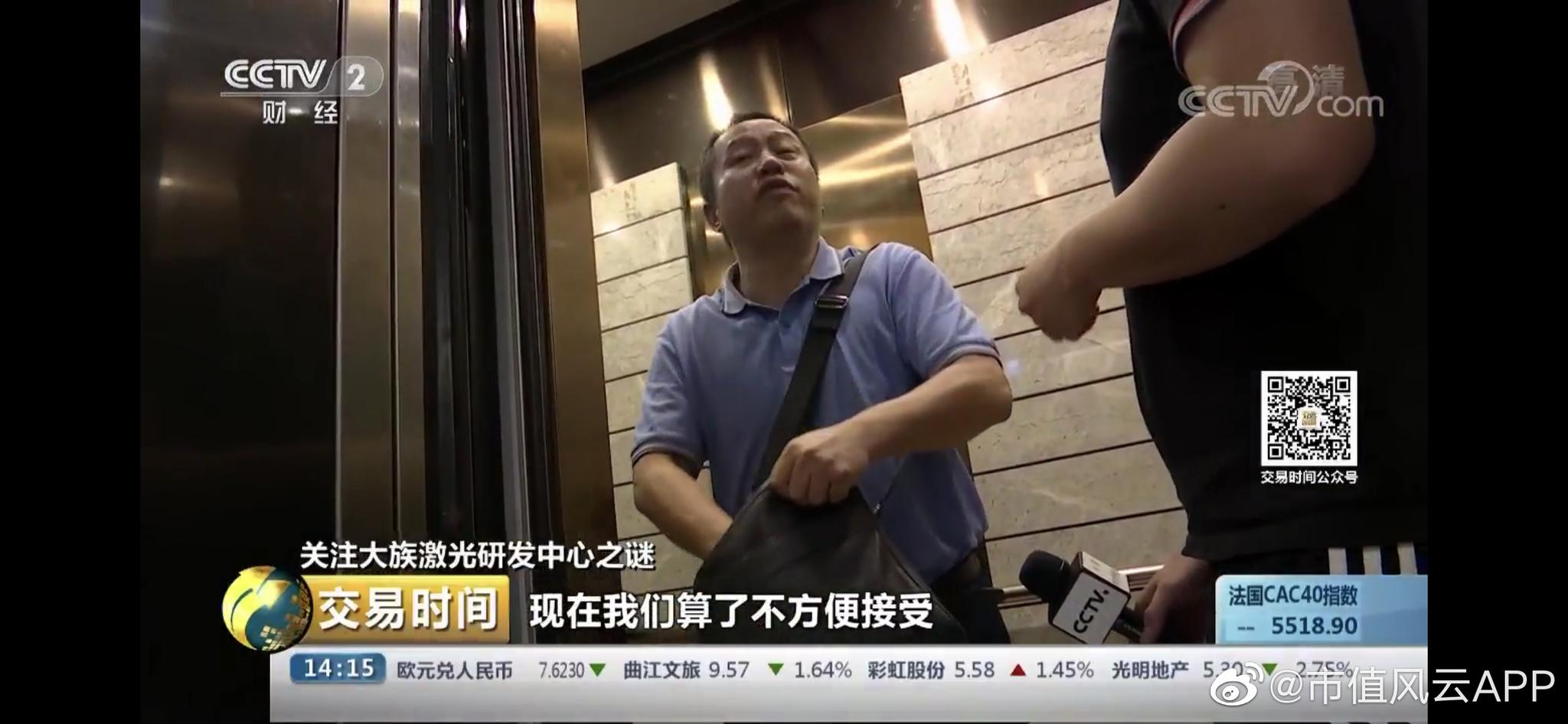 大族激光董事长骂央视记者,你是什么角色,你有什么资格来质问我的画面;董秘直接避而不谈,不方便。@CCTV交易时间