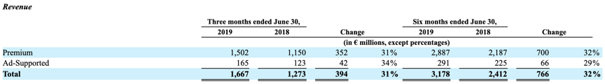 作为世界最大的音乐流媒体服务商,Spotify从免费和付费两种服务模式中获得收入。其中免费用户在享受服务时将被插播广告,公司因此得到广告收入;而付费用户则免除了广告并以缴费方式给公司带来营收。