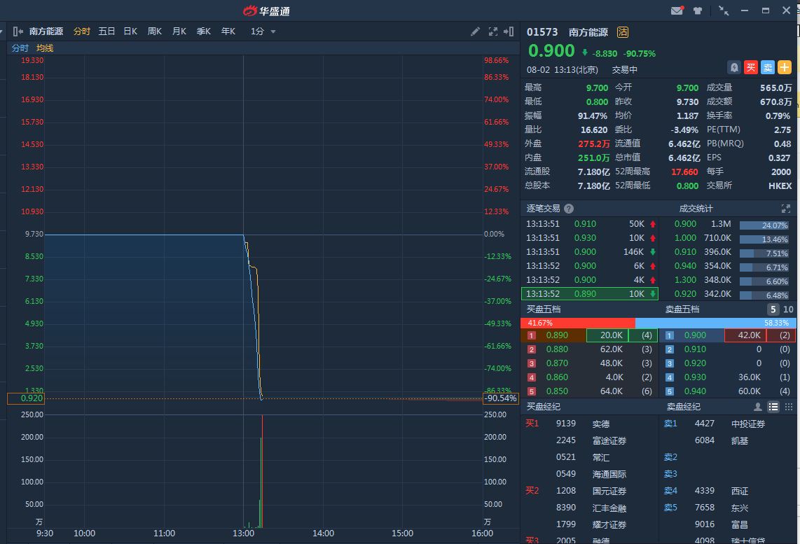 智通财经APP获悉,7月29日,沽空机构艾默生发表狙击南方能源(01573)的沽空报告,称该公司自2016年上市申请时已篡改公司财务状况,夸大矿产量和收入;并认为该公司与其主席兼行政总裁徐波正面临财务困难,财务骗局难以维持,预计“除牌”将是该公司唯一命运。南方能源已于当日下午1点起停牌,停牌前收跌2.21%,报9.73港元。