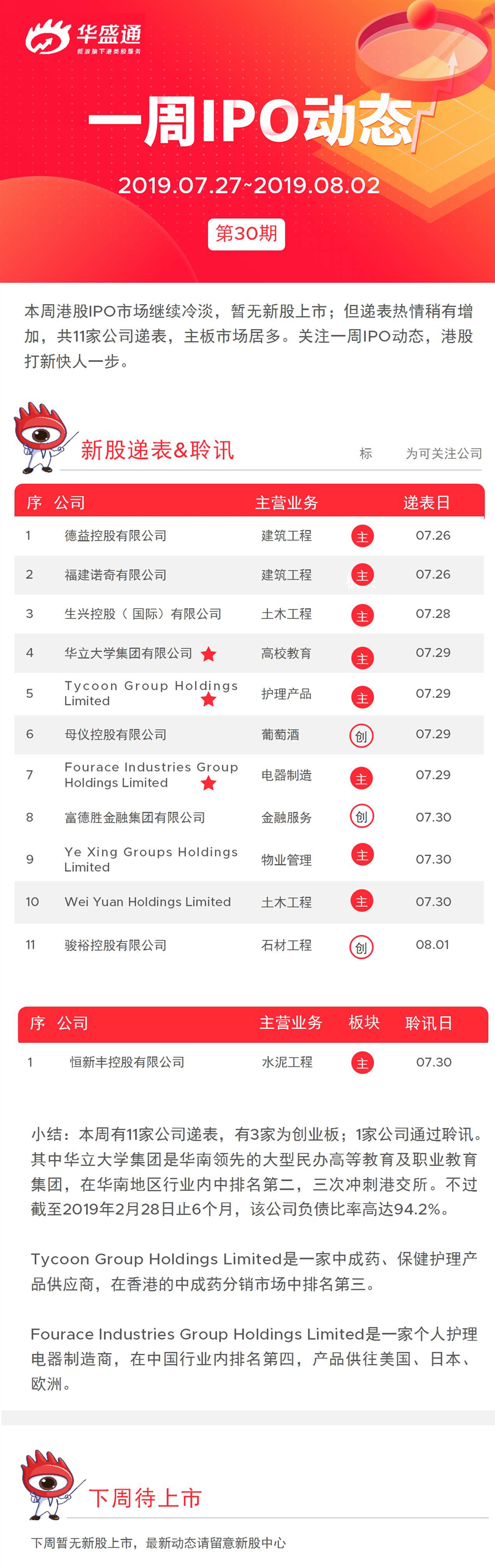 一周IPO动态 | 港股递表热情见涨 华立大学三次冲刺港交所