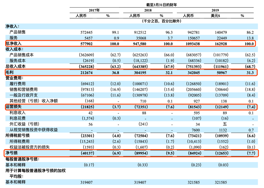 以签约网红带动电商产品销量,表面上避开了支付给电商(淘宝、京东等)的流量成本,但实际上花在签约网红身上以吸引及维持热度的营销费用仍然少不了。2019财年营销费用超两亿元,占营收比例已达18.8%,比2017年(9781万元)及2018年(1.46亿元)高出不少。能否在维持签约网红销货能力的基础上减少营销费用已经是扭亏为盈的关键。