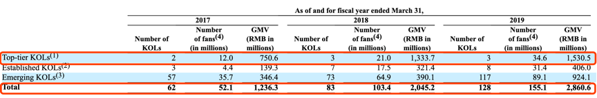 好在新披露的财报显示张大奕GMV的贡献率有所下降,由去年同期的51%下降至43.7%,主要原因在于新签网红数量的增加。然而,即是43.7%的比例也仍体现出如涵对头部网红的极度依赖。