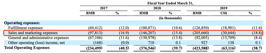 除了张大奕之外,最让市场担忧的是网红运营模式高企的营销费用。