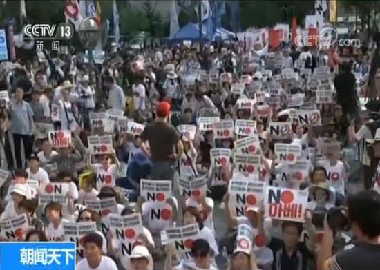 近来,“韩日贸易摩擦”愈演愈烈。3日,韩国民众在首尔市中心举行集会,抗议日本把韩国从贸易优惠的“白名单”中踢出的决定。