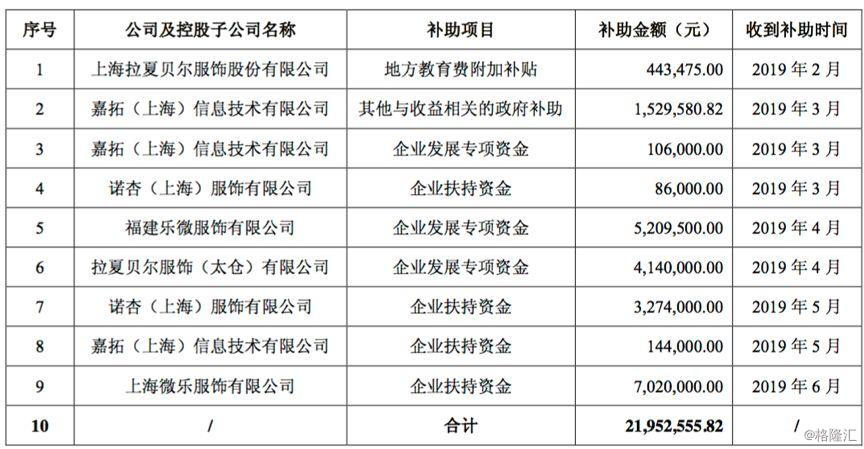 此外拉夏贝尔上半年还收到大额政府补助金。