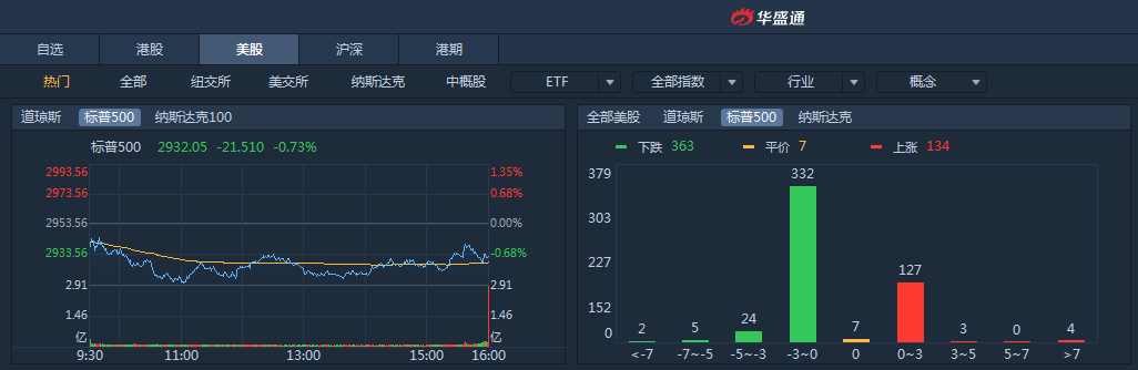 上周五,非农数据未带来惊喜,三大股指均收跌,道指跌0.37%,报26485.01点;标普跌0.73%,报2932.05点;纳指跌1.32%,报8004.07点。标普和纳指创2018年12月以来最大周跌幅。