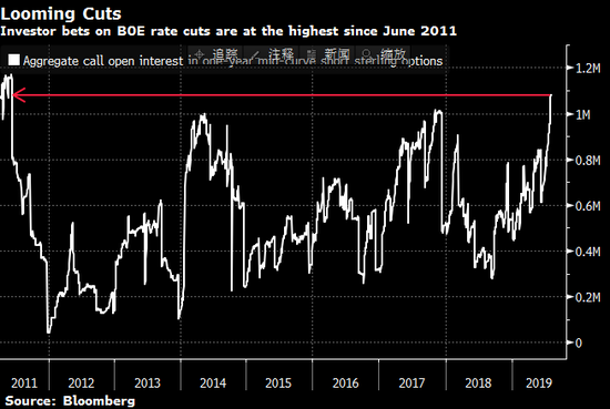 交易员们在过去一个月购买了超过21,000份期权合约,如果英国央行在2021年3月之前进入负利率,这些合约将会赚钱。如果英国央行在英国脱欧和全球经济放缓的双重压力下放松政策以刺激增长,那么投资者的押注就成功了。