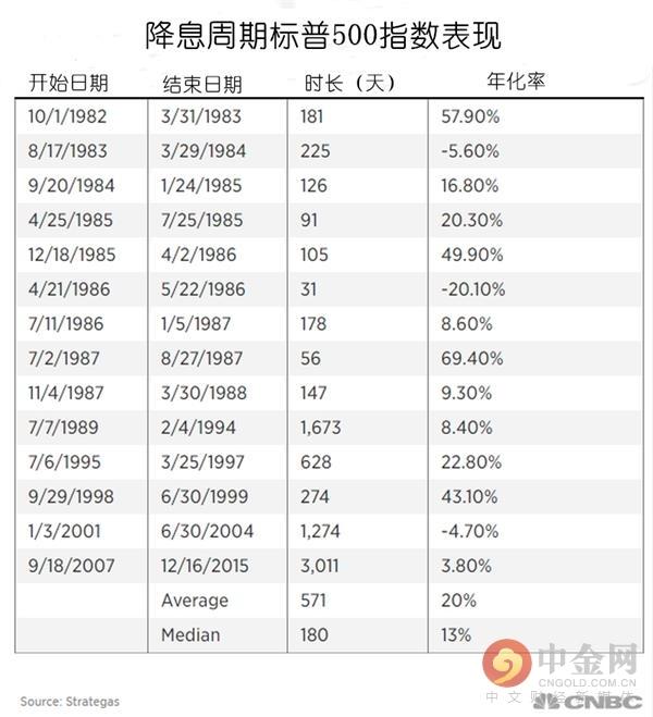 数据也证明了其合理性。根据Strategas的数据,回溯到1982年,标普指数在首次降息和下次加息之间的平均年化回报率为20%,而中位数增幅为13%。该分析指出:“‘不与美联储作斗争’这句投资界的行话是经得起时间考验的。如果投资者顺着美联储的政策方向,那么他们将会赚得盆满钵满。”
