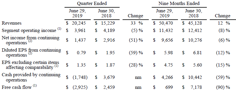 第三财季营收为202.5亿美元,同比增33%,但远低于市场预期214.78亿美元;净利润为19.82亿美元,同比下滑35.21%,同样远低于市场预期25.66亿美元调整后每股收益1.35美元,上年1.87美元,同比下滑28%,与分析师预估的1.75美元差距明显。因大手笔收购21世纪福克斯,自由现金流由上年的24.59亿美元转为负29.25亿美元。对此,管理层将盈利下滑归咎于福克斯正在进行的娱乐资产整合。
