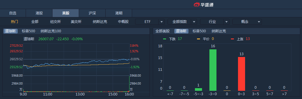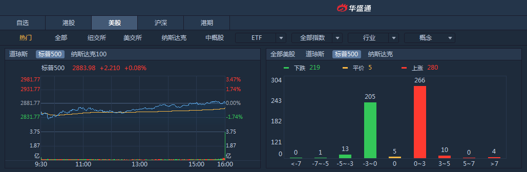 周三,美股大幅低开后强力反弹,标普纳指迎来两连涨。标普500涨0.08%,报2884.00点;道指跌0.08%,报26007.07点;纳指涨,报7862.83点。