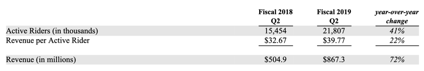 二季度亏损仍然在放大。二季度Lyft净亏损达到6.44亿美元;调整后净亏损达到1.97亿美元,较去年同期1.76亿美元的亏损仍有所扩大,但明显好于2018三季度时2.65亿的亏损峰值,显示出公司在盈利趋势上的好转。对此,Lyft的创始人兼CEO,Logan Green在报告中表示对市场状况对持续改善感到高兴,并预计2019年的亏损将好于此前的预期。