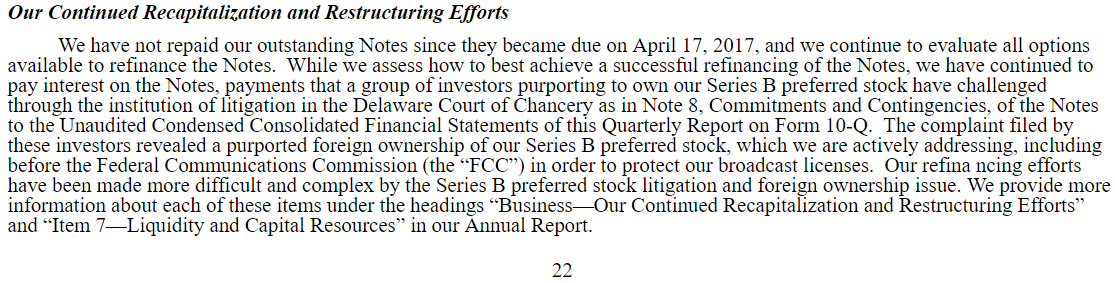 As you can see, this action is currently being contested in court, but this has been the case for some time, and the company continues to make good on its interest obligations to PIMCO. This commitment was reiterated in the 10-Q, as shown in the following excerpt on page 28: