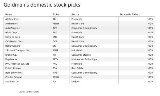 高盛基于美股上市企业的本土销售额构建了一个投资篮子,其中就包括50只标准普尔500指数的企业。