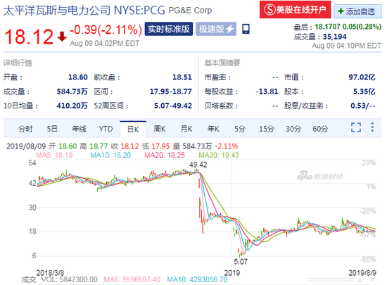 根据周五的一份声明,该公司第二季度的亏损包括39亿美元的税前支出,调整后每股收益为1.10美元,比分析师预期高出11美分。周五,PG&E下跌2.11%至18.12美元,市值略高于97亿美元,相较去年11月份仅剩三成。