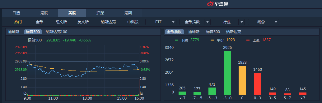 大型科技股纷纷下跌,苹果跌0.82%;Facebook跌1.21%;亚马逊跌1.38%;微软跌0.85%;谷歌跌1.39%;奈飞跌2.21%;特斯拉跌1.38%;优步跌6.8%。中概股普跌,阿里巴巴跌1.91%;百度跌2.53%;京东跌1.6%;网易涨2.05%;新浪跌3.33%;新浪微博跌3.32%;拼多多跌0.92%;趣头条涨6.84%;蔚来跌1.26%;爱奇艺跌1.6%。