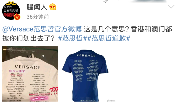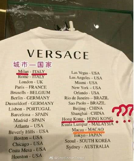 近期,有网友发现意大利奢侈品牌范思哲(Versace)有多款服装将香港、澳门列为国家,引起关注。