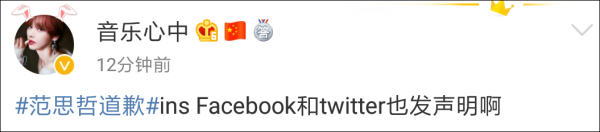 而在中国以外的社交平台,范思哲也未就此事发表任何声明: