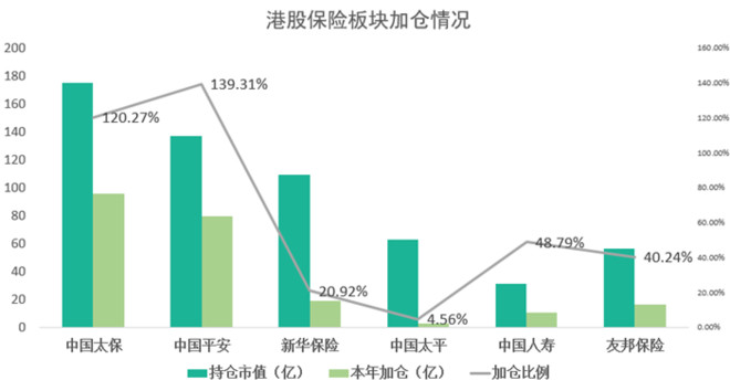 港股的六家寿险公司今年都不同程度地被增持,其中平安和太保的增持幅度远超另外几家,保单质量最高的友邦虽然估值不低但同样被继续增持。